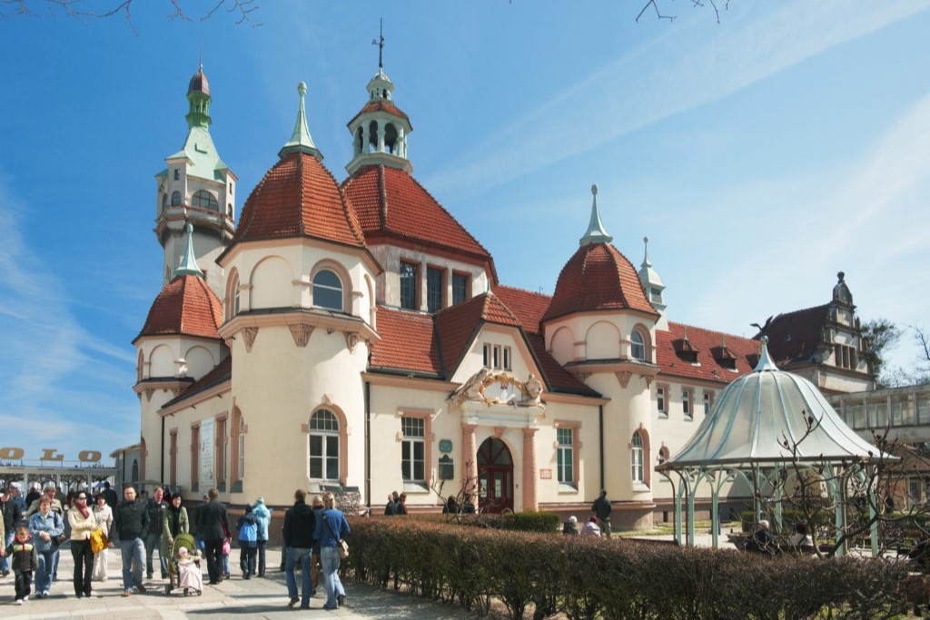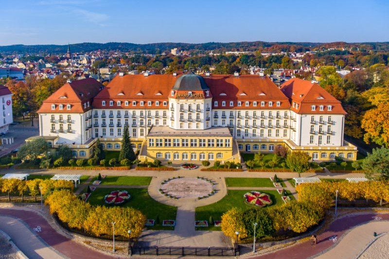 An example of more traditional architecture, dazzling with its dignity, is the Grand Hotel, located near the ‘mouth’ of the Sopot promenade. The proud silhouette of this monumental building standing right next to the beach reflects the rich and anecdotal history of one of the most elegant hotels in Poland. It has hosted hundreds of the most distinguished figures from the world of culture, politics and science. Among those whose visits are most often mentioned were Charles Aznavour, Marlena Dietrich, Charles de Gaulle, Greta Garbo and Jan Kiepura.
